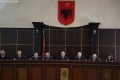 Members of the Supreme Court, Darjel Sina, Arbena Ahmeti, Asim Vokshi, Sander Simoni, Ervin Pupe, Artur Kalaja, Sokol Sadushi Ilir Panda, Sokol Binaj, Albana Boksi during a session of the United Colleges of the Supreme Court of the Republic of Albania. During the session, the judges examined criminal, civil and administrative cases.