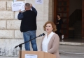 Lecturer at the Faculty of Justice, Enekelejda Olldashi speaking before the Polytechnic University of Tirana where lecturers and students have protested for the salaries of the lecturers, while they have requested an increase of 50% within two years, 30% this year and 20% next year. The lecturers have warned that if their requests are not heard, then there will be a boycott of the classrooms on October 17, the date of the new university academic year.The Prime Minister Edi Rama and the Minister of Education and Sports, Evis Kushi, responded to the protests and announced that the salary increase for lecturers will be 15%.
