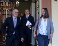 MPs Jorida Tabaku, Gazment Bardhi and the US Ambassador to Tirana, Yuri Kim exiting the headquarters of the parliament after a meeting of the main ambassadors to Albania with the representatives of the opposition. During the meeting, they talked about the administrative-territorial reforms, the electoral reforms as well as the opposition action in general.
