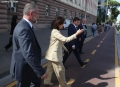 AMBASSADORS LEAVING THE HEADQUARTERS OF THE PARLIAMENT - MPs Jorida Tabaku, Gazment Bardhi and the US Ambassador to Tirana, Yuri Kim exiting the headquarters of the parliament after a meeting of the main ambassadors to Albania with the representatives of the opposition. During the meeting, they talked about the administrative-territorial reforms, the electoral reforms as well as the opposition action in general.