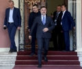 Head of the DP parliamentary group, Enkelejd Alibeaj exiting the headquarters of the parliament after a meeting of the main ambassadors to Albania with the representatives of the opposition. During the meeting, they talked about the administrative-territorial reforms, the electoral reforms as well as the opposition action in general.