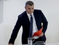 Governor of the Bank of Albania, Gent Sejko exiting a press conference where he spoke about the state of the economy in Albania, mentioning that inflation has reached 7.5%. Sejko announced that the Supervisory Council of the Bank of Albania decided to increase the basic interest rate by 0.5 percent.
