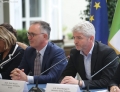 The Director of International Relations at RAI, Simona Martorelli and the Delegated Administrator of RAI, Angelo Teodoli during a conference organized in the framework of the signing of an agreement between RAI and TVSH, which foresees the broadcasting of 24 programs, series television, documentaries and films of RAI from TVSH channels. During the conference held at the premises of the Italian Residences in Tirana, there was talk of plans for the training of TVSH staff as well as technical assistance in the digitization process of the TVSH archive.