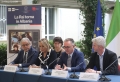 The Director of International Relations at RAI, Simona Martorelli, the Delegated Administrator of RAI, Angelo Teodoli and the Ambassador of Italy in Tirana during a conference organized in the framework of the signing of an agreement between RAI and TVSH, which foresees the broadcasting of 24 programs, series television, documentaries and films of RAI from TVSH channels. During the conference held at the premises of the Italian Residences in Tirana, there was talk of plans for the training of TVSH staff as well as technical assistance in the digitization process of the TVSH archive.