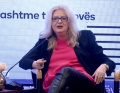 Former Deputy Prime Minister of Kosovo, Edita Tahiri speaking during a national conference on the engagement of citizens in parliamentary processes, organized by the Institute for Democracy and Mediation in the premises of Hotel Rogner. The aim of the conference was to provide an opportunity for discussion on the topics of how the citizens' expectations of the parliament are changing and how the MPs and the support staff of the Parliament are reacting to the request for more engagement with the citizens.