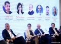 Deputy Speaker of the Parliament, Ermonela Valikaj, Ambassador of Switzerland in Tirana, Ruth Huber and Former Deputy Prime Minister of Kosovo, Edita Tahiri speaking during a national conference on the engagement of citizens in parliamentary processes, organized by the Institute for Democracy and Mediation in the premises of Hotel Rogner. The aim of the conference was to provide an opportunity for discussion on the topics of how the citizens' expectations of the parliament are changing and how the MPs and the support staff of the Parliament are reacting to the request for more engagement with the citizens.