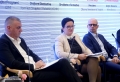 AHC Executive Director, Erida Skendaj and the President of the American Chamber of Commerce, Enio Jaco and Secretary General of the Parliament, Genci Gjoncaj during a national conference on the engagement of citizens in parliamentary processes, organized by the Institute for Democracy and Mediation in the premises of Hotel Rogner. The aim of the conference was to provide an opportunity for discussion on the topics of how the citizens' expectations of the parliament are changing and how the MPs and the support staff of the Parliament are reacting to the request for more engagement with the citizens.