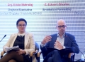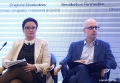 Deputy Speaker of the Parliament, Ermonela Valikaj and the Ambassador of Germany in Tirana, Peter Zingraf speaking during a national conference on the engagement of citizens in parliamentary processes, organized by the Institute for Democracy and Mediation in the premises of Hotel Rogner. The aim of the conference was to provide an opportunity for discussion on the topics of how the citizens' expectations of the parliament are changing and how the MPs and the support staff of the Parliament are reacting to the request for more engagement with the citizens.