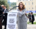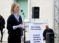 Lecturer Albana Deda at the Faculty of History and Philology speaking at the amphitheater of the University of Arts during a protest where teachers and students protested for lecturers' salaries, while they demanded a 50% increase in two years, 30% this year. and 20% next year. The lecturers have warned that on October 17, from 8 am to 10 am, the new students of the different faculties will be welcomed, however, the lesson will be boycotted and the protest will continue.