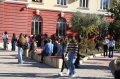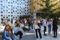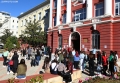 Students in the yard of the History and Philology Faculty during the first day of the academic year. Although the lecturers received the students in the early hours of the day, from 10 am to 12 pm they boycotted the lesson in protest against the low salaries, which they had warned about.
