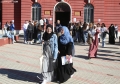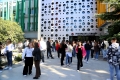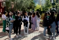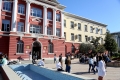 Students wearing hijab in the yard of the History and Philology Faculty during the first day of the academic year. Although the lecturers received the students in the early hours of the day, from 10 am to 12 pm they boycotted the lesson in protest against the low salaries, which they had warned about.