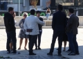 Lecturer Arian Isufi and other lecturers during a protest in front of the Polytechnic Faculty of Tirana, after they boycotted the lesson even in the third day of the beginning of the new academic year. The lecturers continued the protest in front of the faculties from 10 am to 12 pm, demanding a 50% salary increase within two years and the improvement of academic and scientific research conditions.