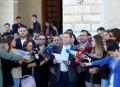 Students during a protest in front of the Polytechnic Faculty of Tirana, after lecturers boycotted the lesson even in the third day of the beginning of the new academic year. The lecturers continued the protest in front of the faculties from 10 am to 12 pm, demanding a 50% salary increase within two years and the improvement of academic and scientific research conditions.