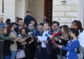 Lecturer Klodian Dhoska speaking during a protest in front of the Polytechnic Faculty of Tirana, after lecturers boycotted the lesson even in the third day of the beginning of the new academic year. The lecturers continued the protest in front of the faculties from 10 am to 12 pm, demanding a 50% salary increase within two years and the improvement of academic and scientific research conditions.