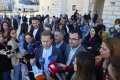 DAY THREE OF THE LECTURERS' PROTEST - Lecturer of the Faculty of Arts, Ardian Isufi speaking during a protest in front of the Polytechnic Faculty of Tirana, after lecturers boycotted the lesson even in the third day of the beginning of the new academic year. The lecturers continued the protest in front of the faculties from 10 am to 12 pm, demanding a 50% salary increase within two years and the improvement of academic and scientific research conditions.