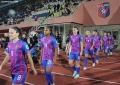 Vllaznia players entering the Women's football match, Vllaznia-Real Madrid of Spain, 0-2, valid for the groups of the UEFA Women's Champions League.