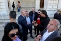 Head of the Lecturers' Union, Aleksander Kovaci and other lecturers protesting in front of the Polytechnic Faculty of Tirana after they boycotted the lesson even on the fifth day of the beginning of the new academic year. The teachers continued the protest in front of the faculties from 10 am to 12 pm, demanding a 50% salary increase within two years and the improvement of academic and scientific research conditions.