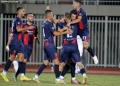 Vllaznia players celebrating scoring a goal during a football match, Vllaznia of Shkodra vs Kastrioti of Kruja, valid for the Albanian Super League, played at the Loro Borici in Shkodra.