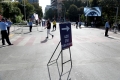 Police banner close to a bus station in the vicinity of Myslym Shyri street in which the traffic was blocked from 8 in the morning until 4 in the afternoon, as part of a series of traffic deviations in Tirana as a result of the holding of the Tirana Marathon 2022. This is the sixth edition of this event which brought to the country's capital about 2500 runners from all over the world, who participated in 4 marathon categories, 'Marathon' (42.1 kilometers), Half Marathon 21 kilometers) and the other 2 races Tirana 10K and We too, which were mostly motivating.