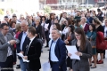 Businessmen Jamarber Malltezi and lecturers during a protest in front of the Polytechnic Faculty of Tirana, after they boycotted the lesson even in the sixth day of the beginning of the new academic year. The lecturers continued the protest in front of the faculties from 10 am to 12 pm, demanding a 50% salary increase within two years and the improvement of academic and scientific research conditions.