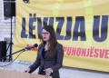 Lecturer at the Faculty of Architecture and Urbanism, Andronira Burda, speaking during a protest in front of the Polytechnic Faculty of Tirana, after lecturers boycotted the lesson even in the sixth day of the beginning of the new academic year. The lecturers continued the protest in front of the faculties from 10 am to 12 pm, demanding a 50% salary increase within two years and the improvement of academic and scientific research conditions.