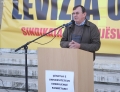 Head of the Lecturers' Union, Aleksander Kovaci speaking during a protest in front of the Polytechnic Faculty of Tirana, after lecturers boycotted the lesson even in the sixth day of the beginning of the new academic year. The lecturers continued the protest in front of the faculties from 10 am to 12 pm, demanding a 50% salary increase within two years and the improvement of academic and scientific research conditions.