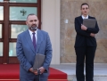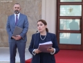 Minister of State for Youth and Children, Bora Muzhaqi and Minister of Justice, Ulsi Manja speaking in front of the Prime Minister's office, after a government meeting, in regards to the approved decisions.
