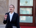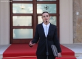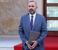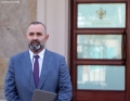 Minister of State for Youth and Children, Bora Muzhaqi speaking in front of the Prime Minister's office, after a government meeting, in regards to the approved decisions.
