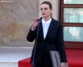 Minister of Justice, Ulsi Manja and The Minister of Health and Social Protection, Ogerta Manastirliu, speaking in front of the Prime Minister's office, after a government meeting, in regards to the approved decisions.