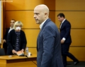 DADO PASSES THE VETTING - Prosecutor in the Prosecution Office of the Tirana Judicial District Court, Ols Dado, leaves after a session of the Independent Qualification Commission, IQC, which in the decision given has qualified him as a clean figure at the end of the process of transitional revaluation, otherwise known as the vetting process. Dado passed the three evaluation pillars, the professional side, wealth, and integrity.