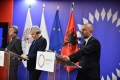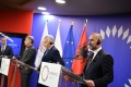 CONFERENCE AFTER THE MINISTERIAL - The Minister of Justice of the Czech Republic, Pavel Blazek, the Minister of Justice of Albania, Ulsi Manja and the European Commissioner for Justice, Didier Reynders speaking during a press conference in the premises of the Palace of Congresses in Tirana after the work of the EU-Balkan Ministerial Western Department of Internal Affairs and Justice. At the end of the ministerial, Manja said that the independence of justice and its guarantee was a key point for Albania in its path towards EU integration. Reyneders also emphasized the importance of the independence of judges and reiterated the EU's support for Ukraine, while stating that Russian aggression is a threat to the international community.