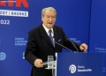 The head of the Democratic Party, Sali Berisha, leaving after a conference at the blue headquarters, where he expressed full support for the lecturers' union and the decisions made by them, while accusing Prime Minister Edi Rama that compared to the government of Kosovo, he steals funds and public assets and does not support education.