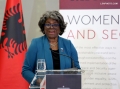 The Ambassador of the United States of America to the United Nations, Linda Thomas-Greenfield speaking during the Women, Peace and Security meeting, organized by the Ministry of Foreign Affairs. During the meeting, participants talked about the progress of gender equality in Albania as well as the cooperation between Albania and the United States.