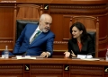 Prime Minister Edi Rama and Deputy Prime Minister and Minister of Energy and Infrastructure Belinda Balluku speaking during a parliamentary session, in which the draft budget for 2023 and the fiscal package for the same year were discussed.