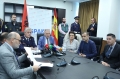 Prosecutor of SPAK, Eneid Kacuci and General Director of the State Police, Muhamet Rrumbullaku and representatives of the Spanish authorities speaking during a press conference where they announced the holding of a SPAK operation in cooperation with EUROJUST, EUROPOL and the experts of the Spanish authorities. As part of the operation, several call centers in Tirana were hit, which had taken millions from European citizens, especially Spanish ones, through a cryptocurrency-based fraud scheme.