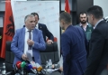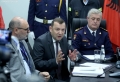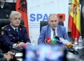 Head of SPAK, Arben Kraja and General Director of the State Police, Muhamet Rrumbullaku and representatives of the Spanish authorities speaking during a press conference where they announced the holding of a SPAK operation in cooperation with EUROJUST, EUROPOL and the experts of the Spanish authorities. As part of the operation, several call centers in Tirana were hit, which had taken millions from European citizens, especially Spanish ones, through a cryptocurrency-based fraud scheme.
