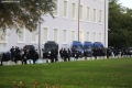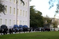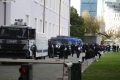 Vans and police forces in the vicinity of the Prime minister's office building, standing by before the protest. The Chairman of the Democratic Party, Sali Berisha and the Chairman of the Freedom Party have called the citizens to an anti-government protest in front of the Prime Minister's Office.