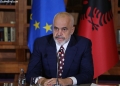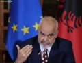 Prime Minister Edi Rama speaking during a joint press conference with the Minister of Finance and Economy, Delina Ibrahimaj, where they encouraged citizens on the possibilities of investing in treasury bills and bonds of the Albanian government.