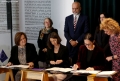 AGREEMENT WITH THE FRENCH DEVELOPMENT AGENCY - Prime Minister Edi Rama, the Minister of Finance and Economy, Delina Ibrahimaj, the French Ambassador in Tirana, Elisabeth Barsacq and the French Secretary of State for Europe, Laurence Bonne during the signing of the agreement between the Albanian government and the French Development Agency for the financing of the water supply network in Durres. The French government will support the financing of the Durres water network through a soft loan of 60 million euros and a grant for technical assistance of 1 million euros.