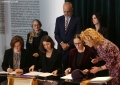 Prime Minister Edi Rama, the Minister of Finance and Economy, Delina Ibrahimaj, the French Ambassador in Tirana, Elisabeth Barsacq and the French Secretary of State for Europe, Laurence Bonne during the signing of the agreement between the Albanian government and the French Development Agency for the financing of the water supply network in Durres. The French government will support the financing of the Durres water network through a soft loan of 60 million euros and a grant for technical assistance of 1 million euros.