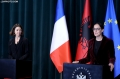 JOINT CONFERENCE WITH BONNE - The French Secretary of State for Europe, Laurence Bonne and the Minister of Finance and Economy, Delina Ibrahimaj speaking during their joint conference after the signing of the agreement between the Albanian government and the French Development Agency for the financing of the water supply network in Durres. The French government will support the financing of the Durres aqueduct through a soft loan of 60 million euros and a grant for technical assistance of 1 million euros.