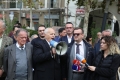 MP Belind Kellici, Gerti Bogdani and the persecuted during a ceremony on the 78th anniversary of the murder of 39 Albanian intellectuals by the communist regime. The former persecuted have asked to be given a place to rest while they have spoken in front of the building of the Institute of the Former Political Persecuted.