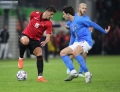The player of the Albanian national football team, Myrto Uzuni in a duel with Federico Di Marco of Italy during the friendly football match Albania vs Italy, 1-3, played at the Air Albania stadium in Tirana.