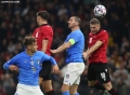 The players of the Italian national football attacking during the friendly football match Albania vs Italy, 1-3, played at the Air Albania stadium in Tirana.