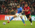 FOOTBALL ALBANIA ITALY - The player of the Albanian national football team, Marash Kumbulla in a duel with Nicolo Zaniolo of Italy during the friendly football match Albania vs Italy, 1-3, played at the Air Albania stadium in Tirana.