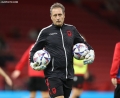 Goalkeeper coach of the Albanian national team, Ilir Bozhiqi during the warm-up before the friendly football match, Albania vs Armenia, 2-0 played at the Air Albania stadium in Tirana.