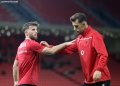 ALBANIAN PLAYERS WARM-UP - The players of the Albanian national team, Keidi Bare, Elseid Hysaj and Tedi Cara during the warm-up before the friendly football match, Albania vs Armenia, 2-0 played at the Air Albania stadium in Tirana.