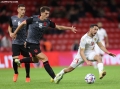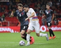The player of the Albanian National Football Team, Kristjan Asllani in a duel with Varazdat Haroyan of Armenia during the friendly football match, Albania vs Armenia, 2-0 played at the Air Albania stadium in Tirana.