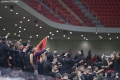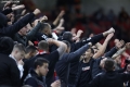 Albanian national football fans singing with flags in their hands during the friendly football match, Albania vs Armenia, 2-0 played at the Air Albania stadium in Tirana.