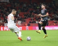 The player of the Albanian National Football Team, Adrian Bajrami in a duel with Zhirayr Shaghoyan of Armenia during the friendly football match, Albania vs Armenia, 2-0 played at the Air Albania stadium in Tirana.
